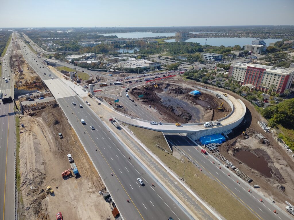- Partial reconstruction of the I-4 and Apopka-Vineland Road (S.R. 535) interchange, which began in 2023. This project will enhance safety and improve access to and from westbound I-4. A new loop ramp from northbound Apopka-Vineland Road to westbound I-4 will enhance mobility and safety by eliminating the need for motorists to turn left across traffic. This project is also extending the I-4 express lane to just west of S.R. 536. FDOT expects the project to reach completion in 2026.