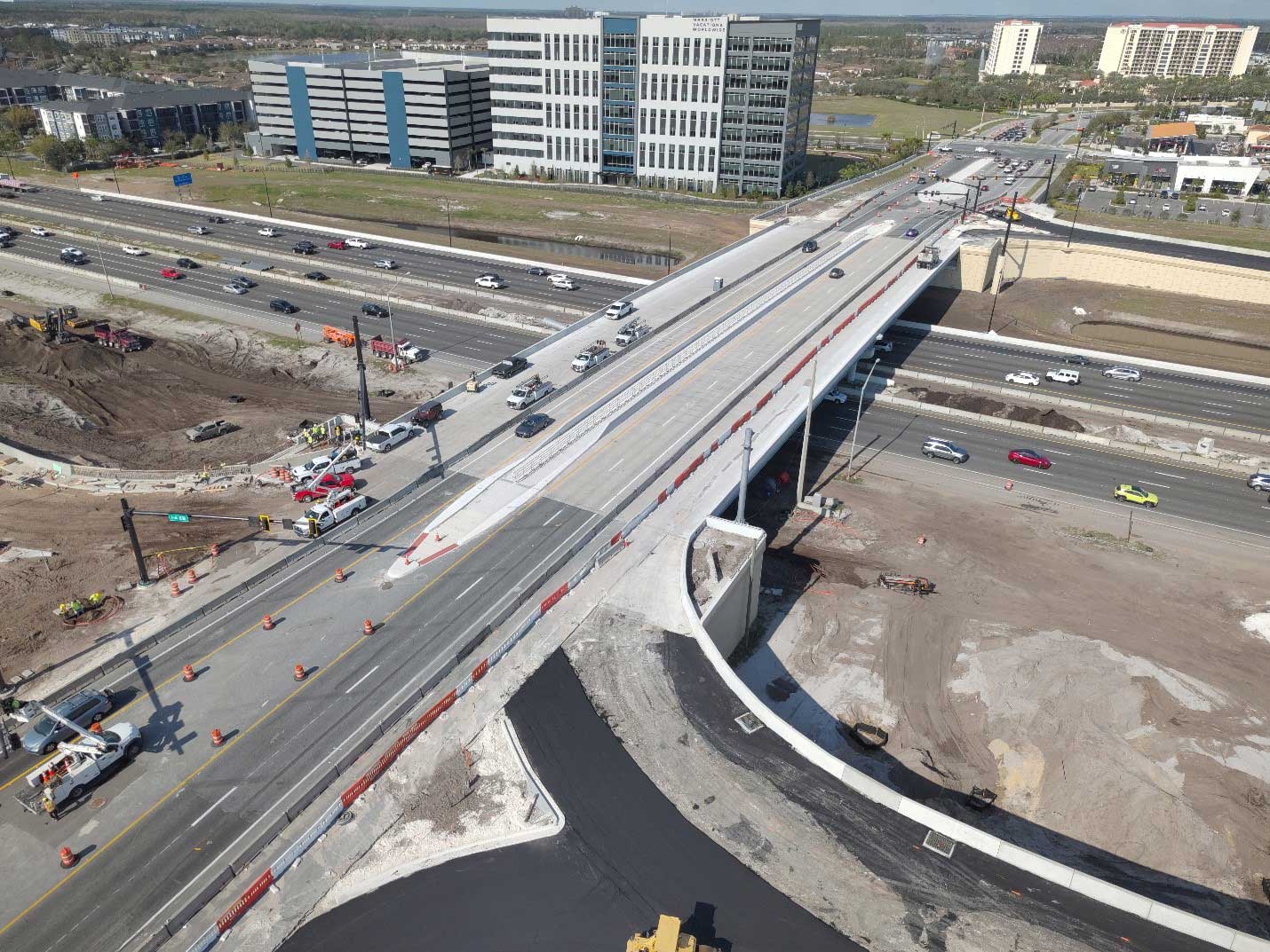 This work is an integral step in the ongoing project to transform the Daryl Carter Parkway overpass into a new diverging diamond interchange (DDI), featuring new exit ramps from both directions of I-4 and an eastbound I-4 entrance ramp. Crews are also constructing a single, buffer-separated, westbound express lane from west of Central Florida Parkway to west of Daryl Carter Parkway. The finished express lane will extend from west of Sand Lake Road to west of S.R. 536 and will be constructed in three separate projects. A westbound I-4 entrance ramp from Daryl Carter Parkway will be built later as part of a separate project.