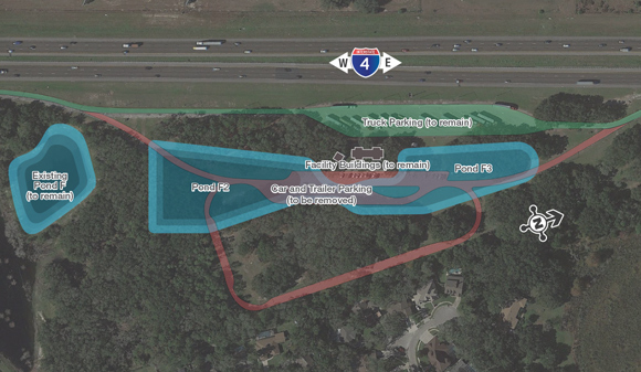 On February 18, parking for cars, SUVs, and other passenger vehicles permanently closed at the rest area to accommodate a new stormwater pond. Extra stormwater capacity is required to accommodate a new auxiliary lane from the end of the I-4 Ultimate project to Lake Mary Boulevard.