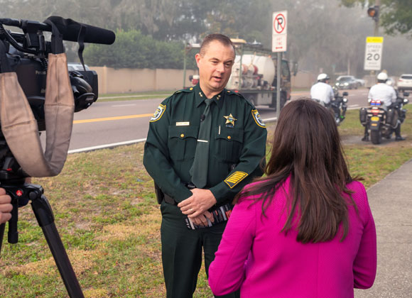 FDOT District Five Communications staff were joined by Seminole County Public Schools Superintendent Dr. Walt Griffin, Seminole County Sheriff’s Office Chief Dan Purcell, and FHP Lt. Kim Montes on February 12 to educate drivers along E.E. Williamson Road in Seminole County.