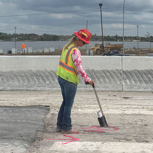 Using GPS equipment, Samantha helps collect data to prepare the grade for lime rock and asphalt. This crucial step ensures the construction site is set properly for drainage and roadway foundation. Samantha’s proficiency in this area comes from her eagerness to learn each time she comes to work. She said one of the things she likes about her job is that each day is different.