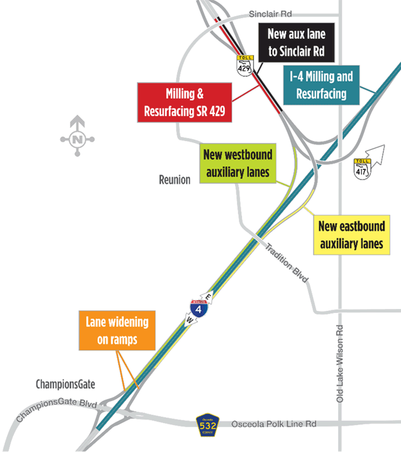 As work continues to reconfigure the Interstate 4 (I-4) and County Road (C.R.) 532 interchange near ChampionsGate, ...