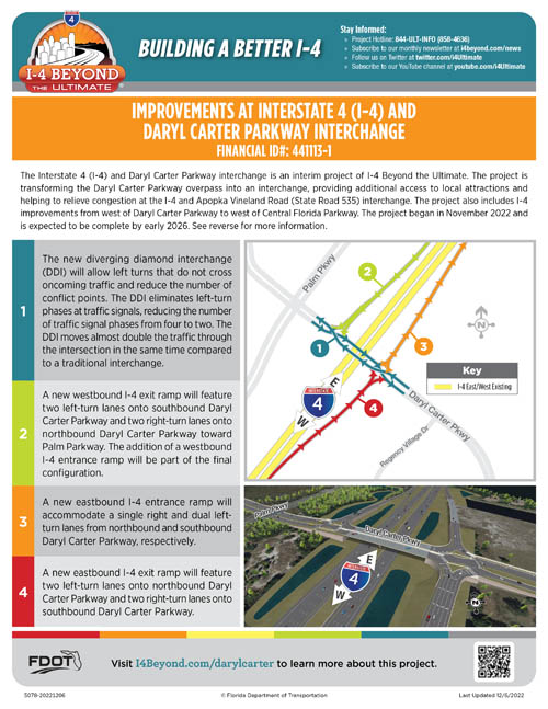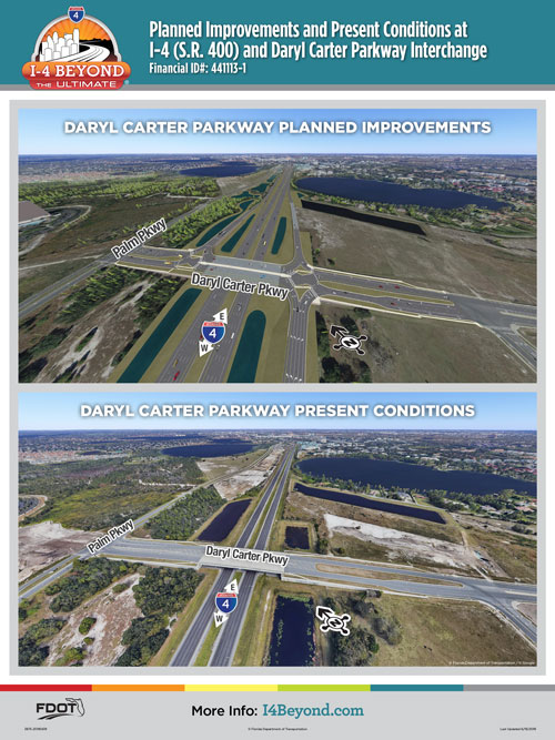 As part of I-4 Beyond the Ultimate, the Florida Department of Transportation (FDOT) completed Interstate 4 (I-4) interchange improvements at Daryl Carter Parkway in fall 2025.