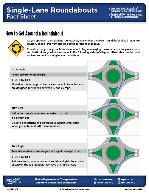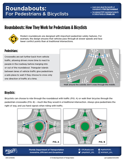 Roundabouts can be safer than traditional intersections and can shorten travel times for both drivers and pedestrians.