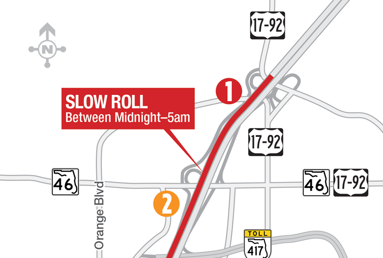 The operation on westbound I-4 will begin at the U.S. 17-92 entrance ramp and on eastbound I-4 the operation will begin at Princeton Street. Both directions will conclude near E.E. Williamson Road overpass.